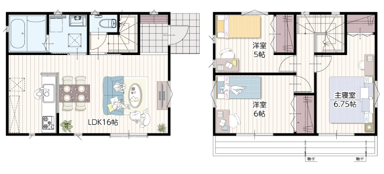 以下に、これらの広さで得られる標準的な間取りの例を紹介します。